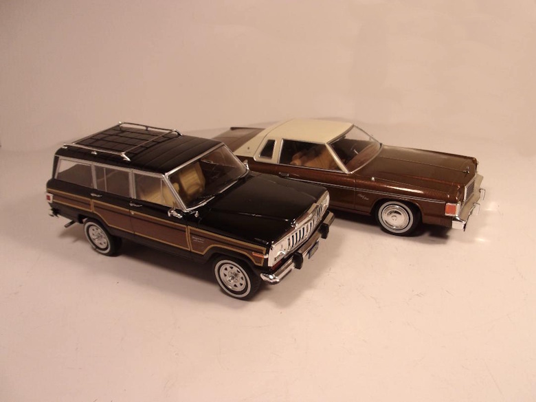 Of possible interest to fans of showroom stock American vehicles are two newly released 1/24 scale diecast models: 1977 Dodge Royal Monaco Coupe, in metallic brown with off white top, and 1981 Jeep Grand Wagoneer, in black with simulated wood grain panels. No opening features on either model, but both are heretofore unrepresented vehicles in the popular scale of 1/24 actual size. The Dodge has the seams for, but not the texture of, what would be the vinyl front portion of the roof on the real car. The Jeep represents a South American vehicle, as logos on the front fenders announce "Doble Traccion" (double traction) which we in North America call four wheel drive. Other than that, both models appear to be well done both in proportion and accuracy. Compared to other models, they are reasonably priced, as well. Much less than some similarly scaled but higher end models, and not much more than a plastic model that would require paint and assembly, these models are shelf ready. ![]() -Jim Amado, January 2026