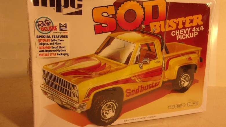 Jim Amado June 8, 2023 1981 Chevy Pickup Round Two, perhaps inspired by the multitude of Ford truck variations that Moebius has released in recent years, has begun to pull out of the archives some trucks of their own. Among them, the '72 Chevy "Racer's Wedge", which was badly in need of modifications it did not receive, and a couple of '90s Chevy former promotional models now released as simplified assembly kits, and the subject of this spiel, the formerly MPC "Sodbuster" '81 Chevy stepside. Nice kit. Unfortunately, it carries the same questionable issue it had in '81. The stepside, a utilitarian workhorse, is equipped with the four headlight grille. According to '81 Chevrolet sales literature, the standard grille was a two headlight unit. The four headlight grille is listed under "Optional Silverado Trim, Chevy's Finest", so it "may" have been an option on the stepside, but it is listed only under the Silverado, Chevy's top of the line trim package, AND, I'll be the first to admit that I don't know everything, but...I've not seen an '81 stepside with a four headlight grille. Other than that, a welcome flashback with potential. The grille can be changed to a single headlight arrangement if one is ambitious, or the pickup box from the '84 GMC "deserter" (former "Fall Guy" ) kit could be swapped, and trim added, to create a high line model of the Chevy Silverado, where the four headlight grille would be right at home. See photos (including crudely modified grille).
