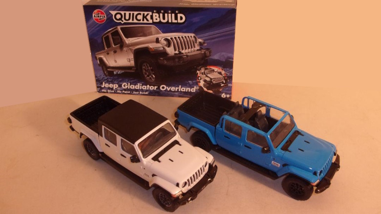 Jim Amado June 6, 2023 Plastic Jeep Gladiator Model Kit Pardon my presumptuousness, but with the popularity of Jeep vehicles, I had thought that for sure someone would offer a plastic model of the Jeep Gladiator as soon as the real vehicle was introduced. It took a while, but someone has. Not Revell, nor one who has offered Jeep models in the past, but someone unexpected, and the kit is a bit different also. Well known British company, Airfix, is ironically the source of this actually great representation of the recent Jeep Gladiator Overland. I say "ironic", because American model companies are among those that have made plastic model kits of British Land Rovers, and now from the United Kingdom comes a model of the American Jeep. The package may fool you. I caution you to not dismiss this model because of a false impression. The kit is similar to a "Lego" in its snap fit assembly, and the box may mislead one to think that the model is 1/32 or a small scale. I assure you it is much closer to 1/25 actual size (see photos of Gladiator with Revell Jeep Pickup). The other area of no concern is that it does not look like a block when assembled, but like a very respectable model that belies the assembly process. Obviously there are some concessions to the simplified assembly nature of the model, such as the bland steering wheel, and the wheel hubs that resemble screw heads with a slot in them. Considering that at the time of this writing, the Airfix kit is the only plastic model of this ubiquitous vehicle, it's a must have if one is a Jeep fan.