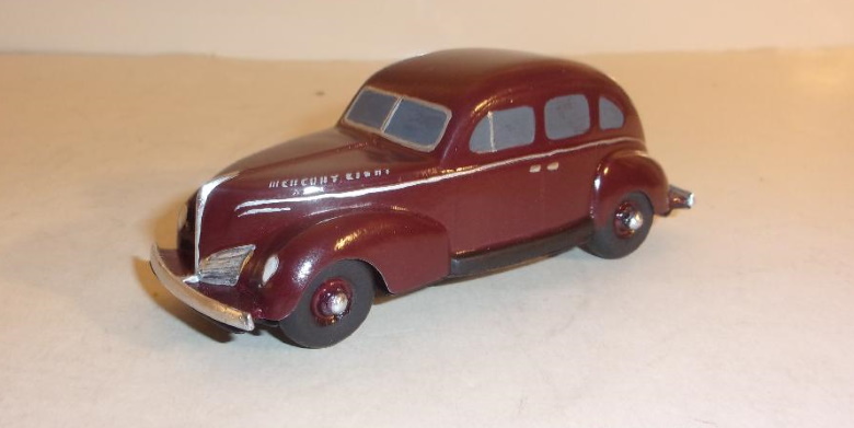 The '39 Mercury model pictured here is just shy of 5 inches in length, made of metal, and is believed to have been a stamp dispenser. A roll of